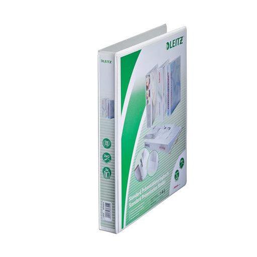 Gyűrűs könyv, panorámás, 2 gyűrű, D alakú, 44 mm, A4 Maxi, PP, LEITZ, fehér