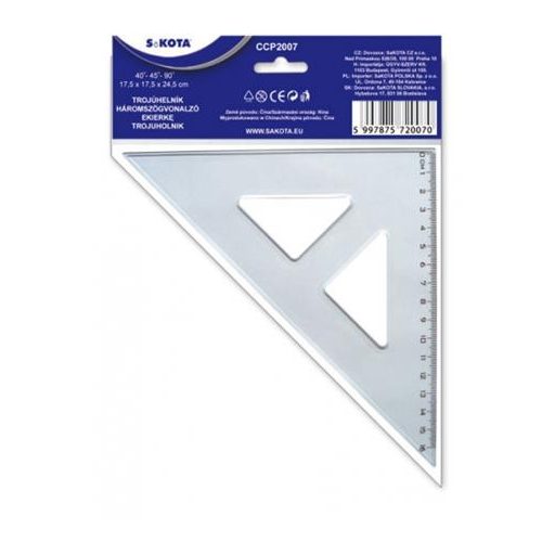 Háromszög vonalzó, műanyag, 45°, 16 cm, SAKOTA