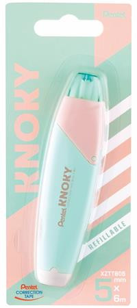 Hibajavító roller, 5 mm x 6 m, utántölthető, PENTEL "Knoky", világoszöld-barack