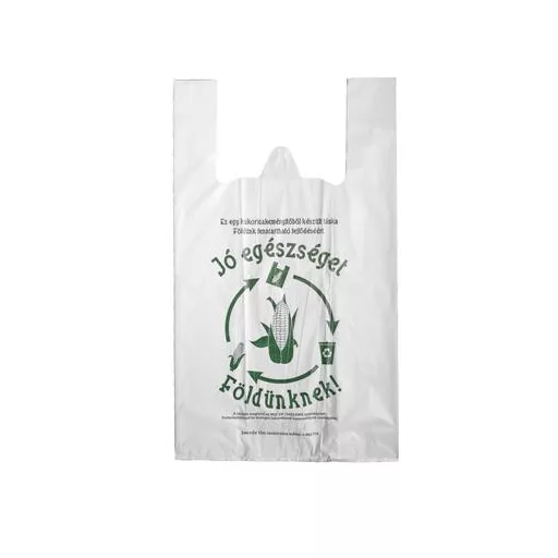 Környezetbarát, komposztálható, biológiai úton lebomló (PLA), megújuló forrásból származó, kukoricakeményítő alapú ingvállas táska.