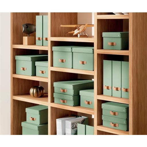 -bőrből készült fogantyúval rendelkezik, így könnyen leemelhető a polcokról és tárolóegységekről