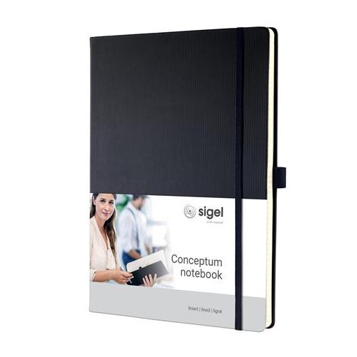 Jegyzetfüzet, exkluzív, A4, vonalas, 97 lap, keményfedeles, SIGEL "Conceptum", fekete