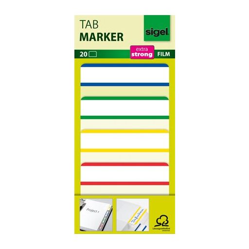 Jelölőcímke, megerősített, fehér szélű, 50x38 mm, 4x5 db, SIGEL, vegyes színek