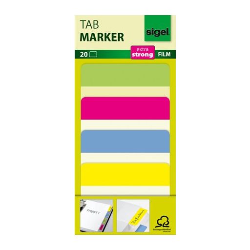 Jelölőcímke, megerősített, színes szélű, 50x38 mm, 4x5 db, SIGEL, vegyes színek