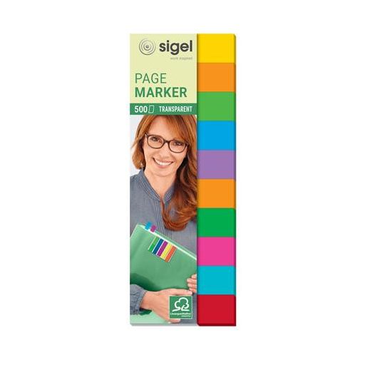Jelölőcímke, műanyag, 10x50 lap, 44x12,5 mm, SIGEL, vegyes színek