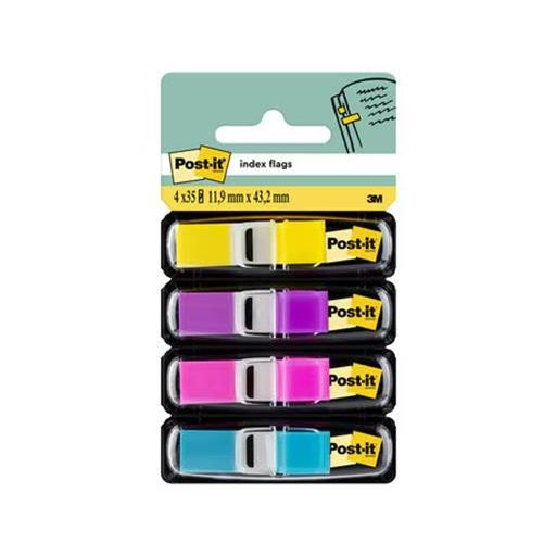Jelölőcímke, műanyag, 4x35 lap, 12x43 mm, 3M POSTIT, élénk vegyes