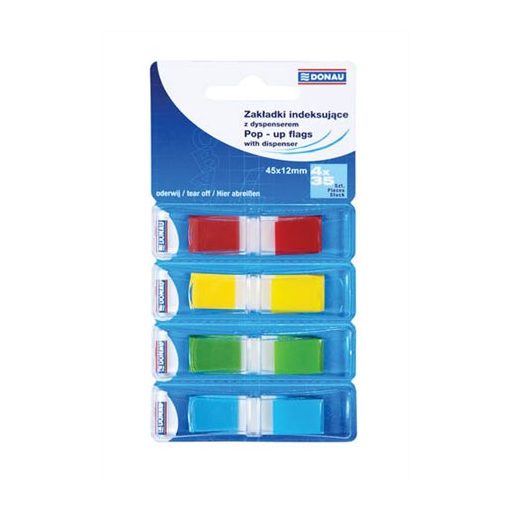 Jelölőcímke, műanyag, 4x35 lap, 12x45 mm, DONAU, vegyes szín