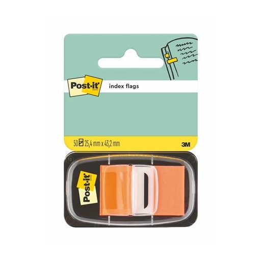 Jelölőcímke, műanyag, 50 lap, 25x43 mm, 3M POSTIT, narancs