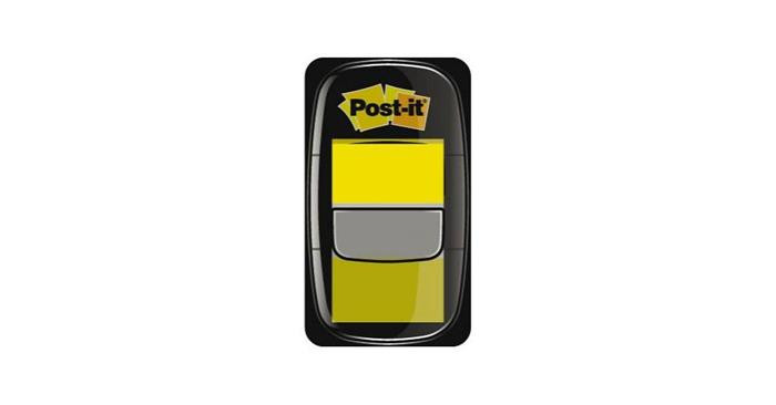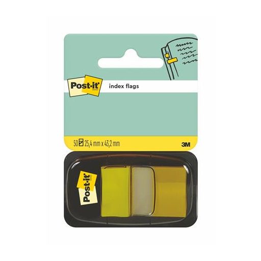 Jelölőcímke, műanyag, 50 lap, 25x43 mm, 3M POSTIT, sárga