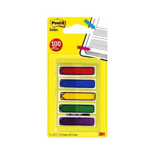 Jelölőcímke, műanyag, 5x20 lap, 11,9x43,2 mm, nyíl, 3M POSTIT, vegyes