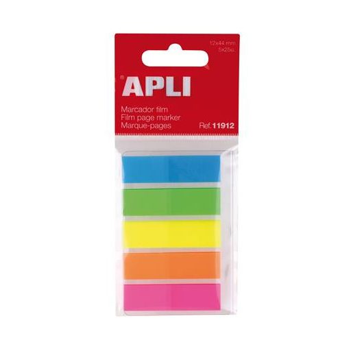 Jelölőcímke, műanyag, 5x25 lap, 12x45 mm, APLI, 5 szín