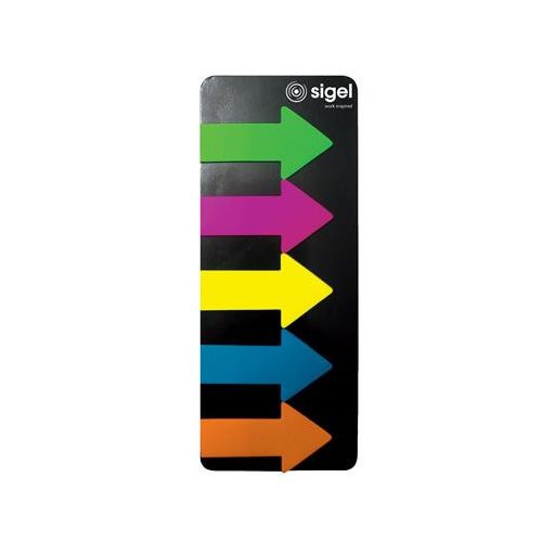 Jelölőcímke, műanyag, 5x25 lap, 25x45 mm, SIGEL "Nyilak", vegyes szín