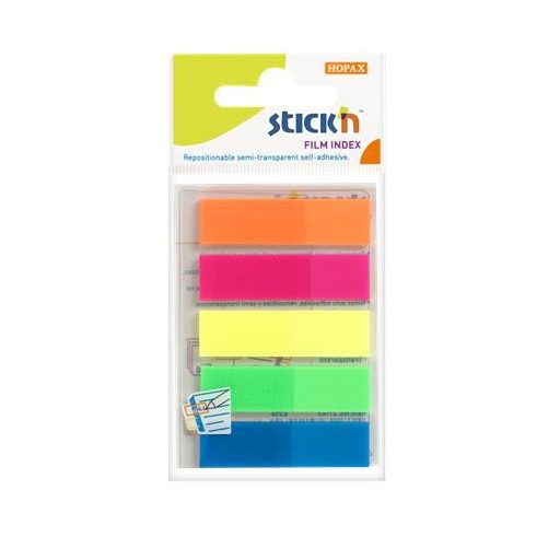 Jelölőcímke, műanyag, 5x25 lap, 45x12 mm, STICK N, neon színek