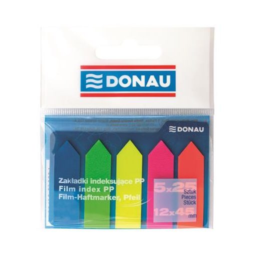 Jelölőcímke, műanyag, nyíl forma, 5x25 lap, 12x45 mm, DONAU, neon szín