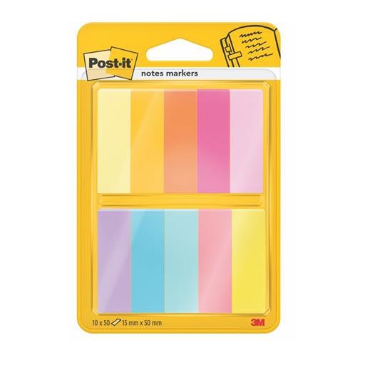 Jelölőcímke, papír, 10x50 lap, 15x50 mm, 3M POSTIT, vegyes