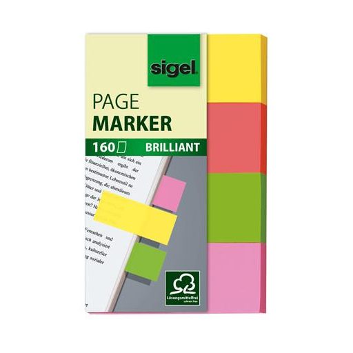 Jelölőcímke, papír, 4x40 lap, 20x50 mm, SIGEL "Brilliant", vegyes szín