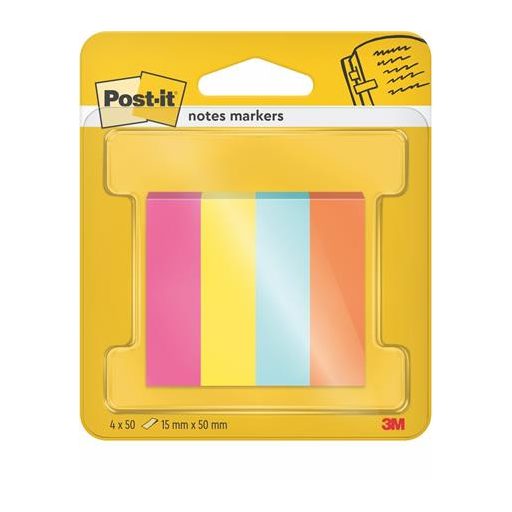 Jelölőcímke, papír, 4x50 lap, 15x50 mm, 3M POSTIT "Poptimistic", vegyes