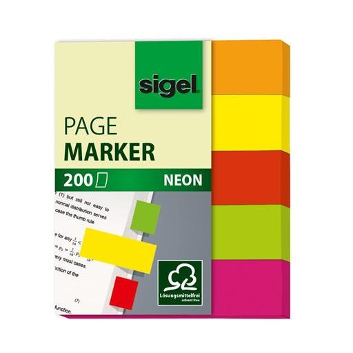 Jelölőcímke, papír, 5x40 lap, 12x50 mm, SIGEL "Neon Mini", vegyes szín
