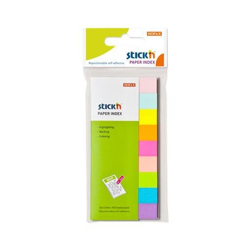 Jelölőcímke, papír,  9x50 lap, 50x12 mm, STICK N, neon és pasztell mix
