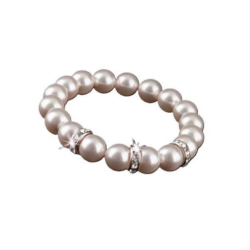 Karkötő, gyöngyházfehér SWAROVSKI® gyöngyből, fehér rondella kristállyal, 10mm, ART CRYSTELLA®