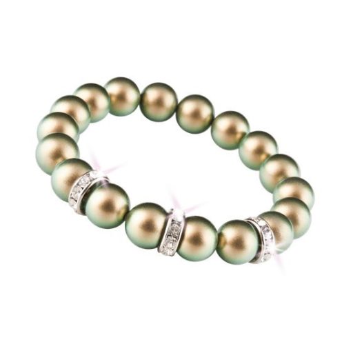 Karkötő, zöld SWAROVSKI® gyöngyből, fehér rondella kristállyal, 10mm, ART CRYSTELLA® M