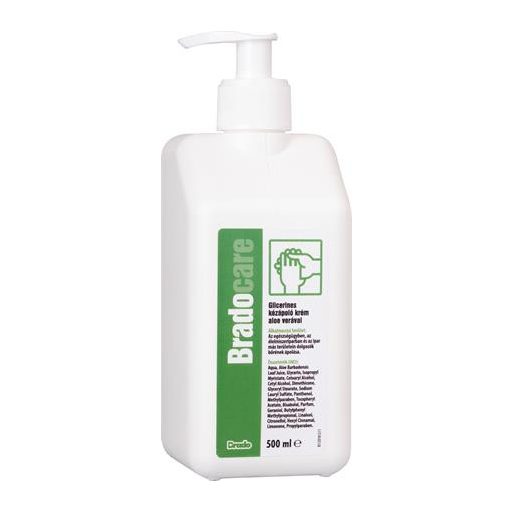 Kézápoló krém, munkavédelmi, glicerines, pumpás, 500 ml, BRADOCARE, aloe vera