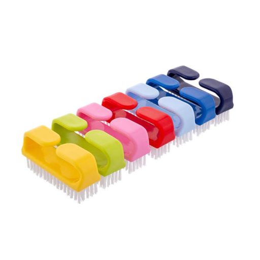 Markolattal ellátott műanyag körömkefe, műanyag szálakkal.