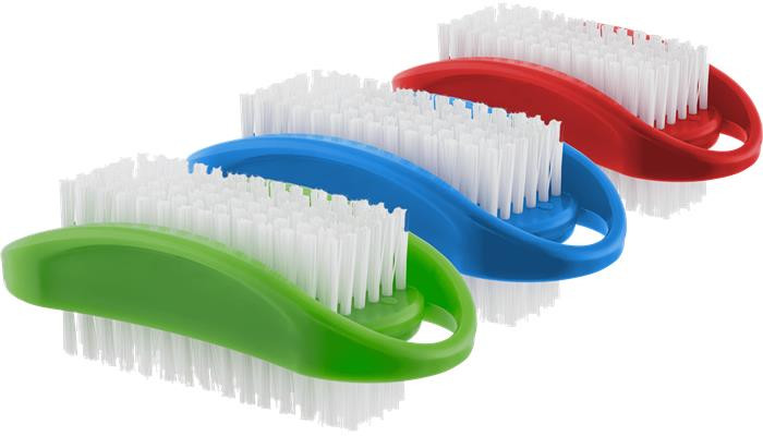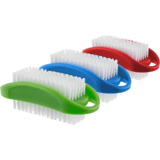 Kétoldalas műanyag körömkefe, műanyag szálakkal.