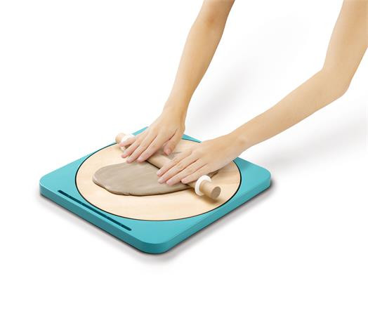 A könnyen használható, kézzel hajtható és szabályozható korongozó készlettel kevesebb szennyeződés keletkezik. A gyerekek egyszerűen készíthetnek eredeti és lágy mintákkal díszített kerámiákat.