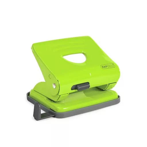 Lyukasztó, kétlyukú, 25 lap, fém, RAPESCO "825", zöld
