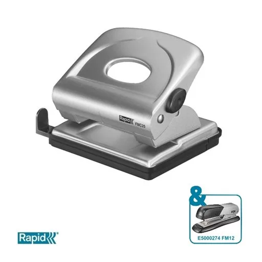 Lyukasztó, kétlyukú, 25 lap, fém, RAPID "FMC25", ezüstmetál