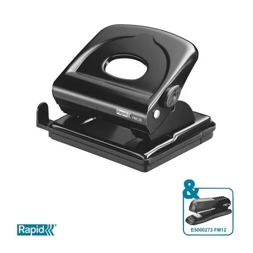 Lyukasztó, kétlyukú, 25 lap, fém, RAPID "FMC25", fekete