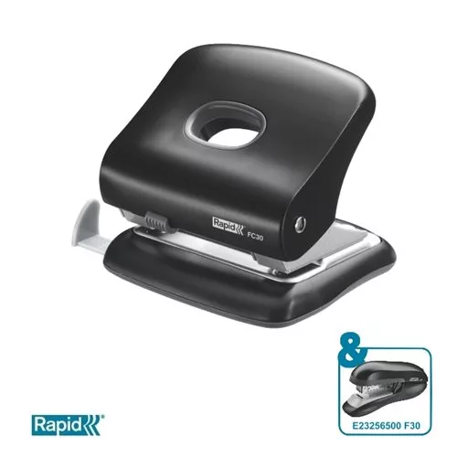 Lyukasztó, kétlyukú, 30 lap, RAPID "FC30", fekete