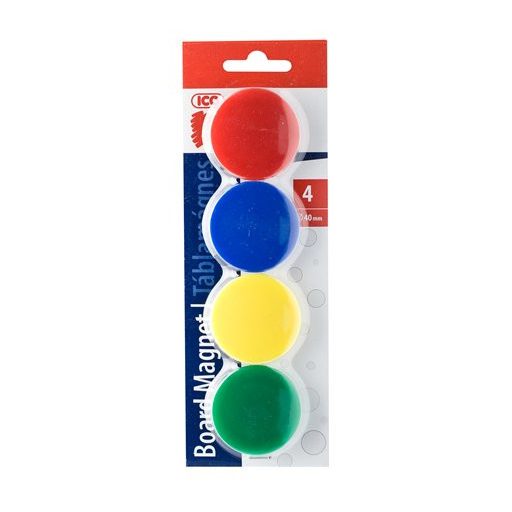 Mágneskorong, 40 mm, 4 db, ICO "JY-40", 4 szín