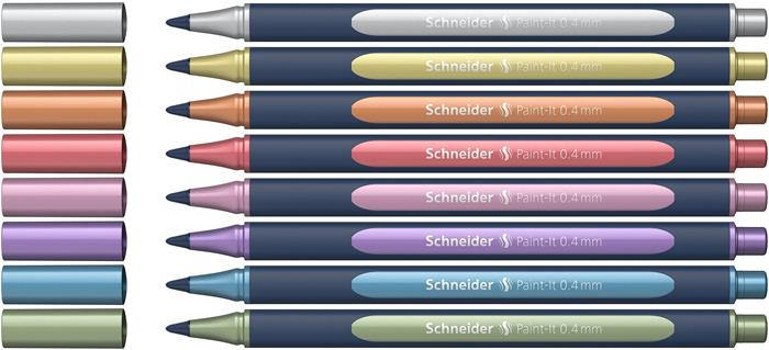 Metálfényű rollertoll készlet, 0,4 mm, SCHNEIDER "Paint-It 050" 8 különböző szín