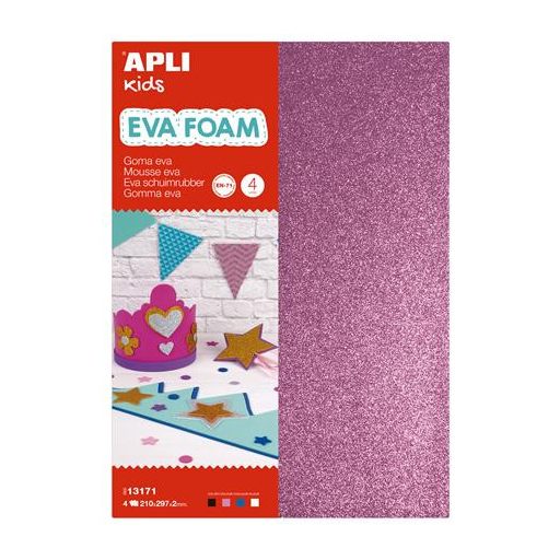 Moosgumi, 210x297 mm, A4, glitteres, APLI Kids "Eva Sheets", vegyes színek