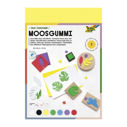 Moosgumi, öntapadó, 20x29 cm, 7 lap, FOLIA "Basic", 7 különböző szín