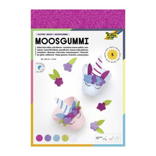 Moosgumi, öntapadó, csillámos, 20x29 cm, 5 lap, FOLIA "Magic", 5 különböző szín