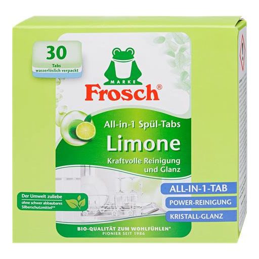 Mosogatógép tabletta, 30 db, FROSCH, zöldcitrom