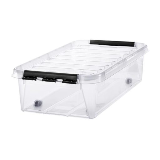Műanyag tárolódoboz, 31 liter, fekete fogantyúkkal és görgőkkel, SMARTSTORE "Classic 35", átlátszó