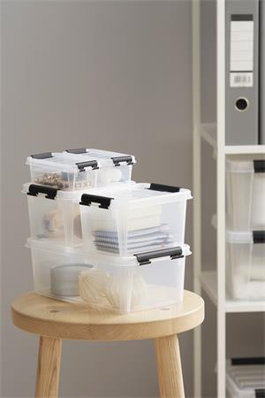 Műanyag tárolódoboz, 3,6 liter, fekete fogantyúkkal, SMARTSTORE "Classic 5", átlátszó