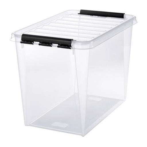 Műanyag tárolódoboz, 61 liter, fekete fogantyúkkal, SMARTSTORE "Classic 65", átlátszó