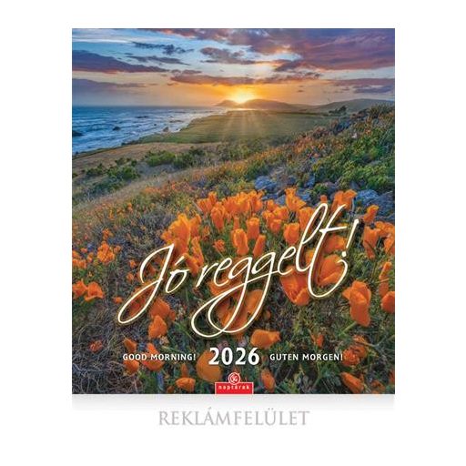 -naptár rész: magyar, angol, német nyelven, magyar  ünnepek  és névnapokkal, napkelte, napnyugta és holdállás  feltüntetésével
