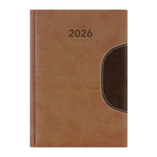 Két harmonizáló színű, bőrhatású anyag egyedi összeillesztésével, gyönyörű varrással készült agendák nagy méret-és színválasztékban.