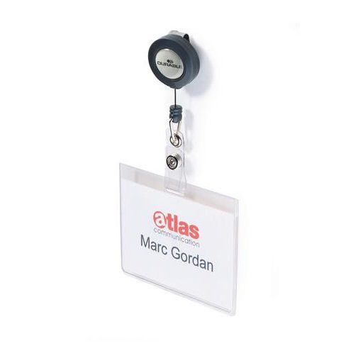 Névkitűző, kihúzható tartóval, 60x90 mm, DURABLE