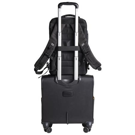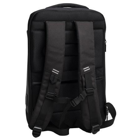 -hátoldalon lévő heveder lehetővé teszi, hogy a hátizsákot egy bőrönd teleszkópos fogantyújához rögzítsünk