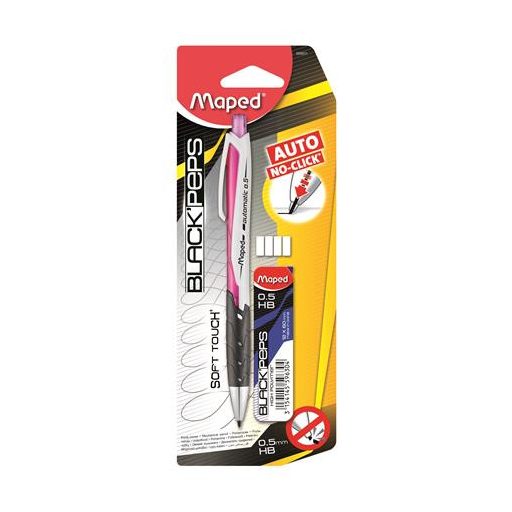 Nyomósirón, 0,5 mm, ajándék grafitbéllel, MAPED "Black'Peps", vegyes színek