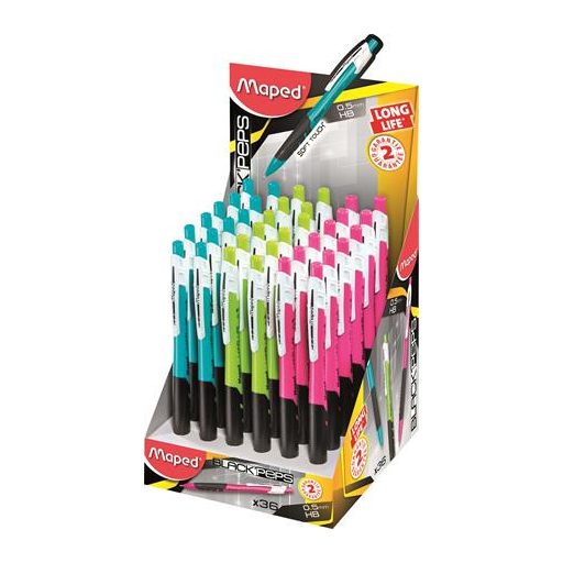 Nyomósirón display, 0,5 mm, MAPED "Long Life", vegyes színek