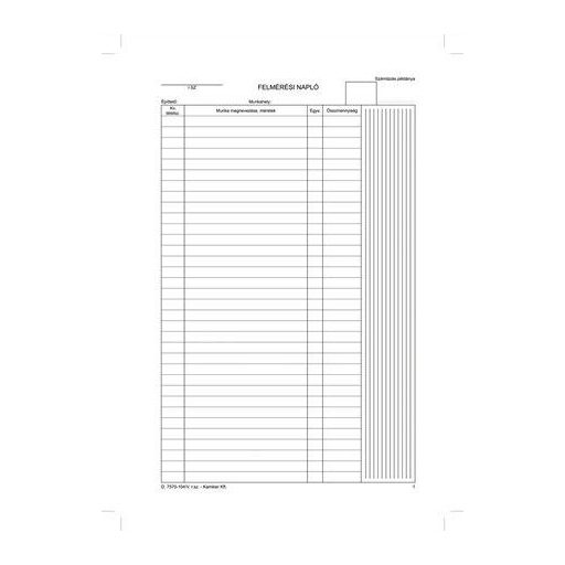 Nyomtatvány, felmérési napló, 25x5, A4, VICTORIA PAPER "D.7570-104", 10 tömb/csomag