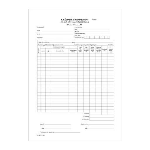 Nyomtatvány, kiküldetési rendelvény (belföldi), 25x2, A4, VICTORIA PAPER "B.18-73", 10 tömb/csomag